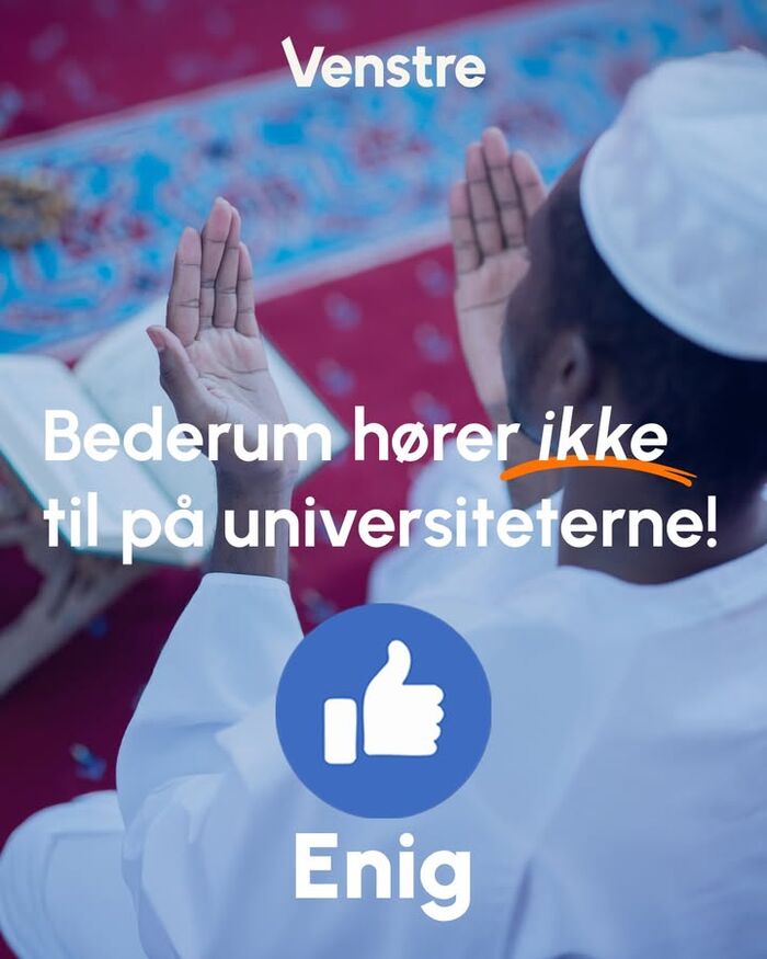 Danske universiter på stribe har lukket deres bederum, da der har været alt for mange eksempler på, at det bliver brugt til at udøve negativ social kontrol mod kvindelige studerende. Og det hører ikke til i Danmark!